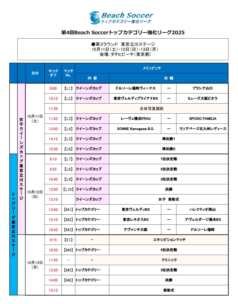 男女ともにビーチサッカーの最高峰を楽しめる3日間。